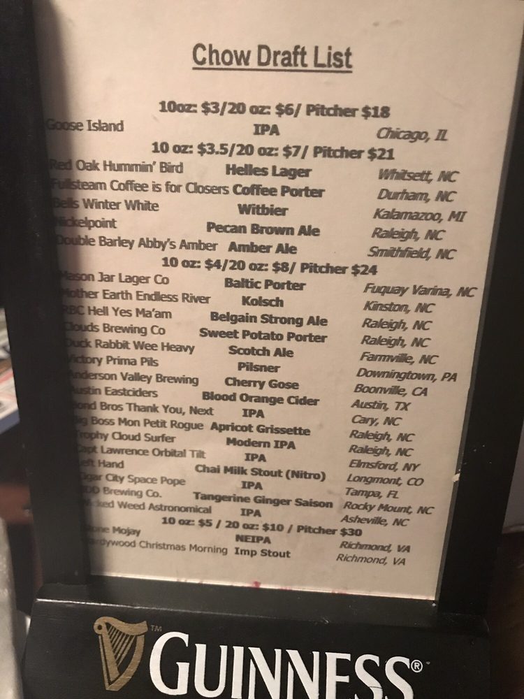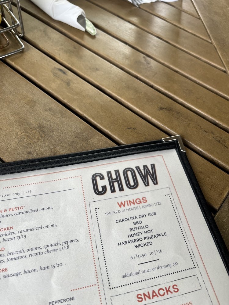 Chow Pizza Bar is a sports bar located in Raleigh, NC, offering a variety of delicious options ranging from burgers to pizzas. With a focus on customer satisfaction, Chow Pizza Bar provides a range of utilities such as delivery, takeout, and reservation options. The menu boasts many vegetarian options, ensuring there is something for everyone. From tasty salads like the Chow Blue and simplistic Tomato to savory snacks like the Fried Brussels Sprouts and Pepperoni Roll, every dish is crafted with care and flavor. The pizza selection includes unique creations like the BBQ Chicken Pizza and the Pulled BBQ Pig Pizza, catering to all taste preferences. Customers rave about the quality of the food and the friendly service, making Chow Pizza Bar the perfect spot for a casual meal or a night out with friends.