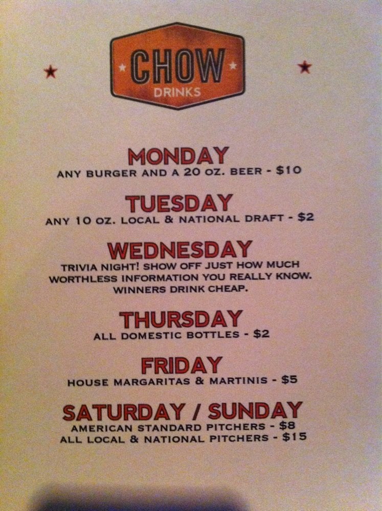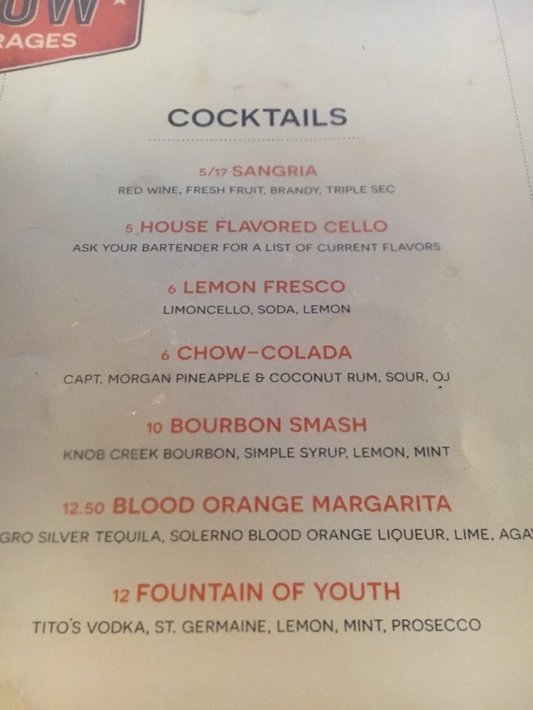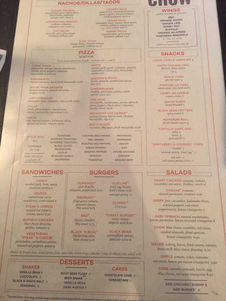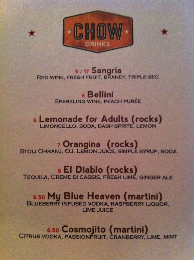 Chow Pizza Bar Menu (2025 Update)